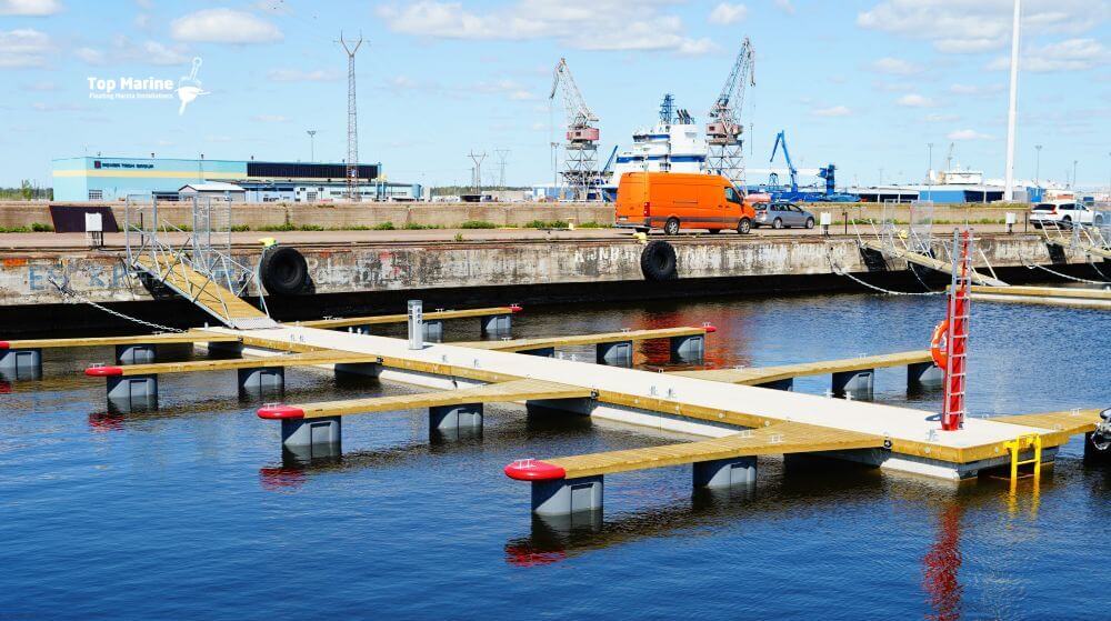 Käimispoomid paigaldatakse kai külge hingede või kummipukside abil, mis tagavad hääletu ühenduse.