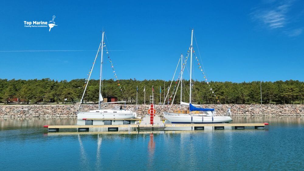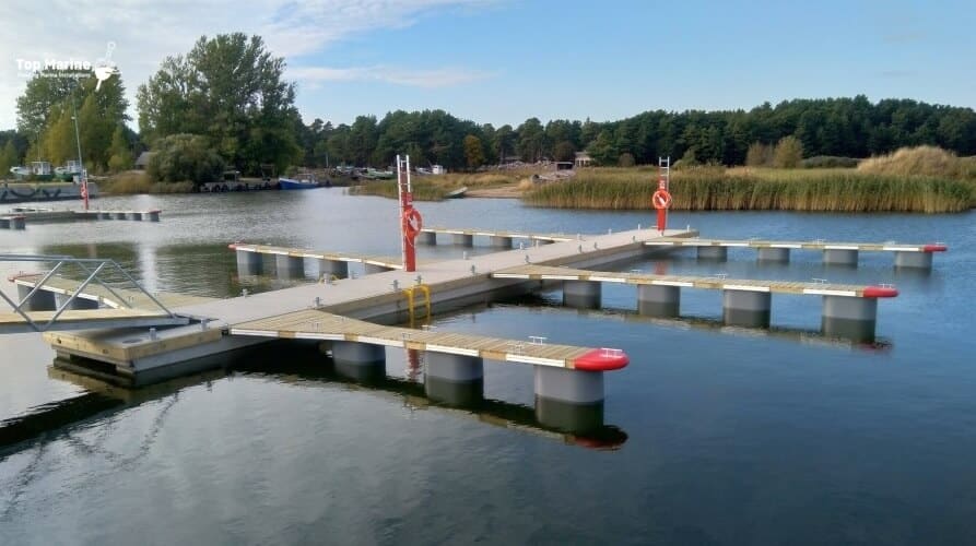 300 liitrised EPS-vahuga täidetud uppumiskindlad plastujukid garanteerivad suure kandevõime ning tänu koonilisele kujule ei ohusta neid talvel jää ega kinnikülmumine. Poomi puitosa on valmistatud süvaimmutatud männipuidust ja laudis libisemise vältimiseks profileeritud.